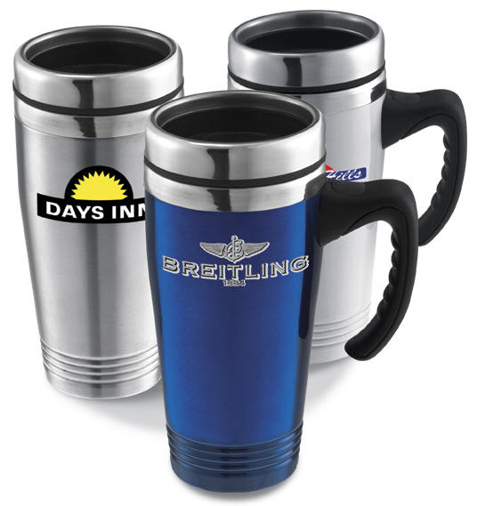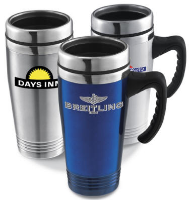 16oz STEEL TRAVEL MUG - double wall stainless steel - steel push on lid with slide opening - easy grip handle