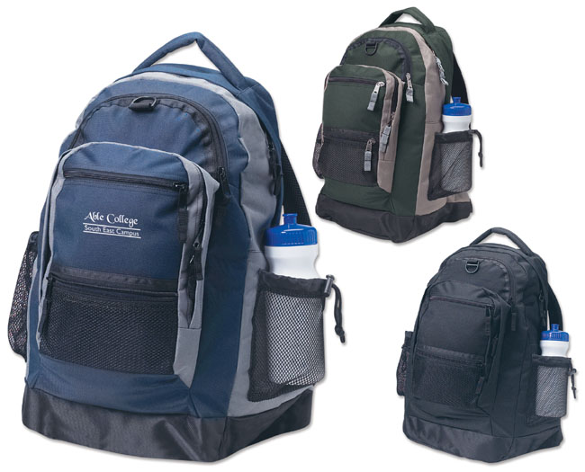 duty 600D polyester material - ballistic vinyl bottom support - adjustable padded shoulder straps - front organizer zipper compartments - side mesh pockets (bottle not included) - padded top carry handle