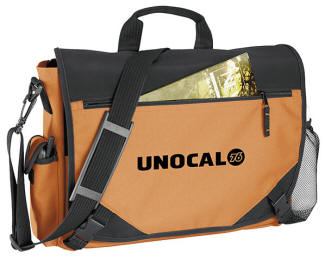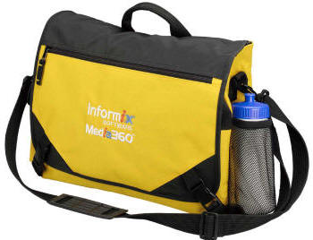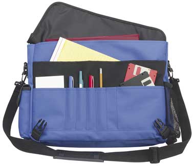 COURIER BRIEFCASE - soft lightweight durable briefcase - made of TrenTexฎ 600D polyester - PVC micro trim - adjustable shoulder strap - zipper top pocket & inside pockets - side bottom front buckle closures - side mesh pocket (bottle not included)