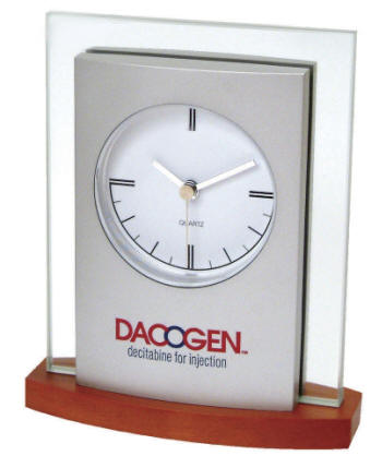 LARGE WOOD & GLASS DESK CLOCK - elegant heavy glass, wood & metallic finish - extra large classic dial design - makes a great recognition or award - second hand - quartz analog movements