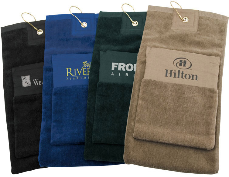 Golf Towel with Pocket Cotton Terry 8" x 26"