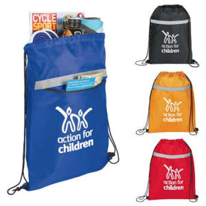 Drawstring Backpack Earbud Hole Zipper Side Pocket