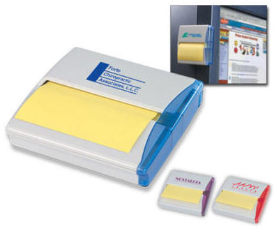 POP-UP NOTES DISPENSER - uses 3" x 3" 3M post-itฎ pop-up notes - great for desk top or sticking anywhere - double-sided mounting tape - yellow pop-up notes included - easy pop-up notes re-load side sleeve