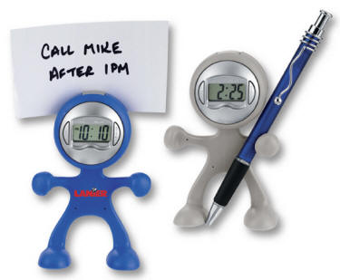 BENDABLE CLOCK MAN - bendable arms holds pen, pencil... - head note-clip holds notes - alarm clock, seconds & date - battery included - pen not included