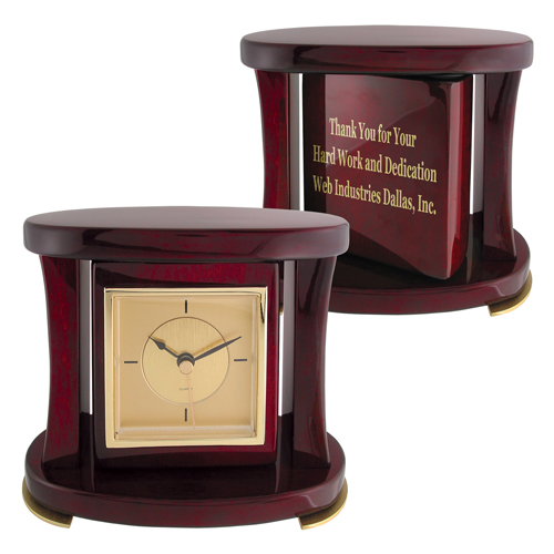 Logo Item #ck-1129TP Rosewood Award Desk Clock
