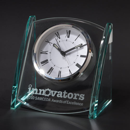 Logo Item #ck-6097MG Executive Glass Desk Clock