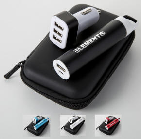 Power Bank 3-Port USB Car Charger Travel Kit