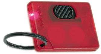 FLAT ON/OFF KEY LIGHT - high quality bright red LED light - on/off switch stays on without pressure - flat design easily fits into pockets - large logo area - replaceable batteries included
