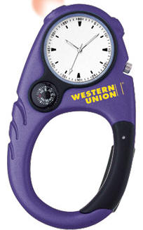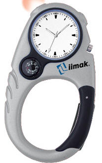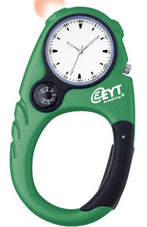 CLIP-ON POCKET WATCH - large analog display - red LED security light - precision timing - compass - carabiner clip