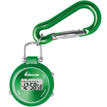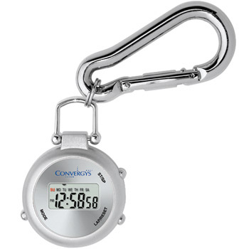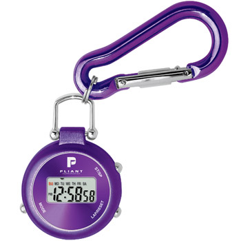 CLIP-ON METAL STOPWATCH - large LCD display - metal case & clip in bold metallic colors - precision timing - stopwatch - alarm - day of the week calendar - carabiner clip